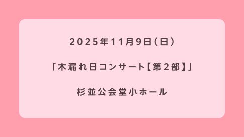 コンサート:2025年11月8日(土)17:00 杉並公会堂 大ホール