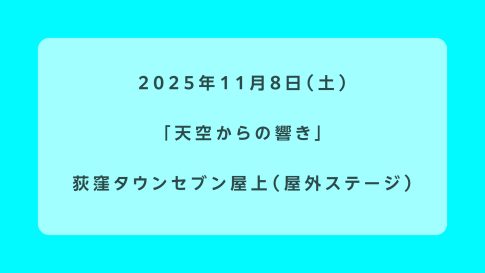 開催日 2025年11月8日(土) 会場 荻窪タウンセブン 屋上(屋外ステージ)(上荻1-9-1) 概要 出演・曲目 地図