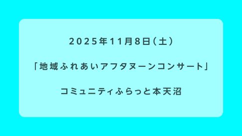 開催日 2025年11月8日(土) 会場 コミュニティふらっと本天沼(本天沼2-12-10) 概要 出演・曲目 地図