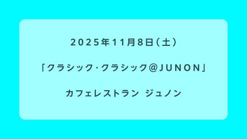 開催日 2025年11月8日(土) 会場 カフェレストラン ジュノン(上荻1-23-1 白鳥ビルB1) 概要 出演・曲目 地図