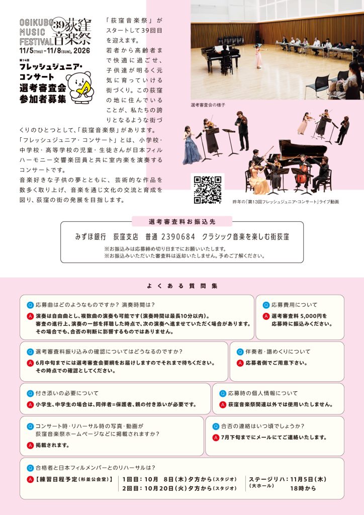 第14回フレッシュジュニア・コンサート選考審査会 参加者募集