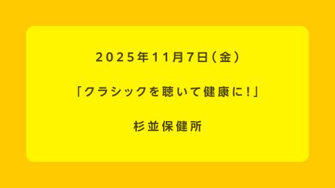 開催日 2025年11月7日(金) 会場 杉並保健所(杉並区荻窪5-20-1) 概要 出演・曲目 地図
