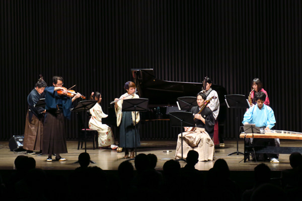 ★【お着物アンサンブルグループ】大川義秋(箏)、大西桃子(Pf)、鈴木お里(Fg)、関建一郎(Vl)、高崎将充(三味線)、徳永寛子(Tsax)、三澤匠(EB)、横山恵梨(Fl) ◉ G.ガーシュイン:ラプソディー・イン・ブルー、他